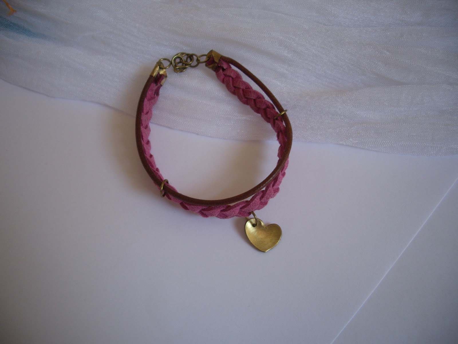 Βραχιόλι φτιαγμένο από ορείχαλκο και δέρμα σουέτ. Στο κέντρο του μεταλλικού πλαισίου έχουν δεθεί ημιπολύτιμοι λίθοι μαργαριταριού, γρανάτη και γυαλί σε μοβ απόχρωση. Τα δερμάτινα λουράκια έχουν χρώμα σκούρο λιλά και μπλε. Χειροποίητο κούμπωμα. Διαστάσεις μεταλλικού στοιχείου : 2,5x2,3 εκ.